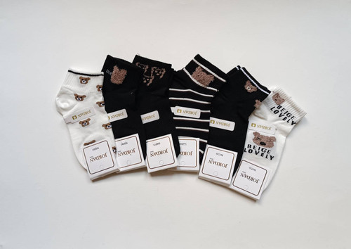 جوراب نخ پنبه طرح پاپیونی بسته 5 عددی