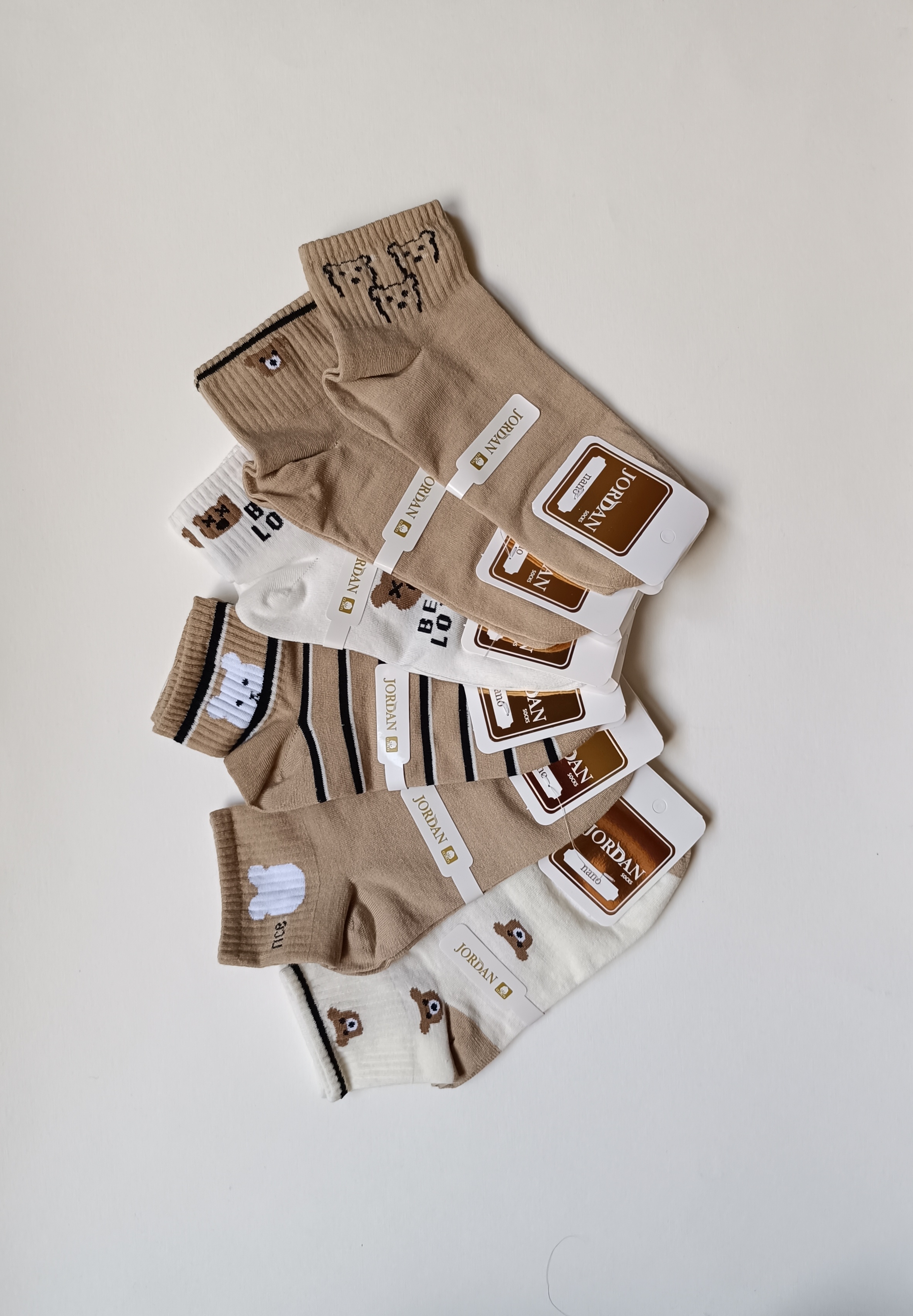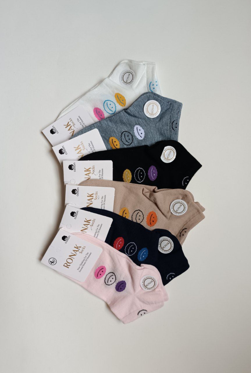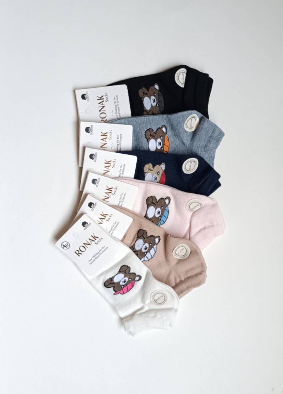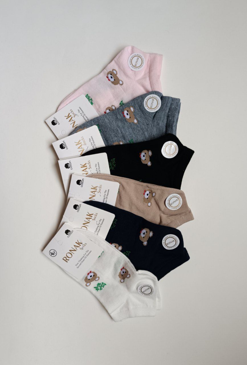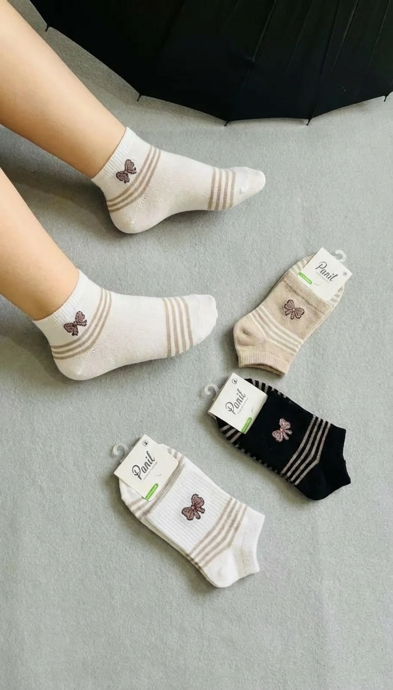 جوراب نخ پنبه طرح پاپیونی بسته 5 عددی