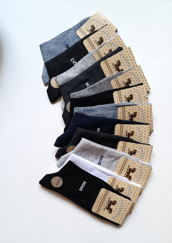 جوراب نخ پنبه 12 عددی مردانه ساق دار طرح زمینه کبریتی بغل پاکتی