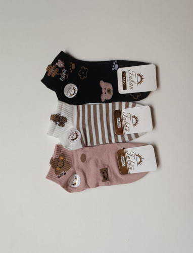 جوراب فانتزی دخترانه بسته 3عددی کد 225