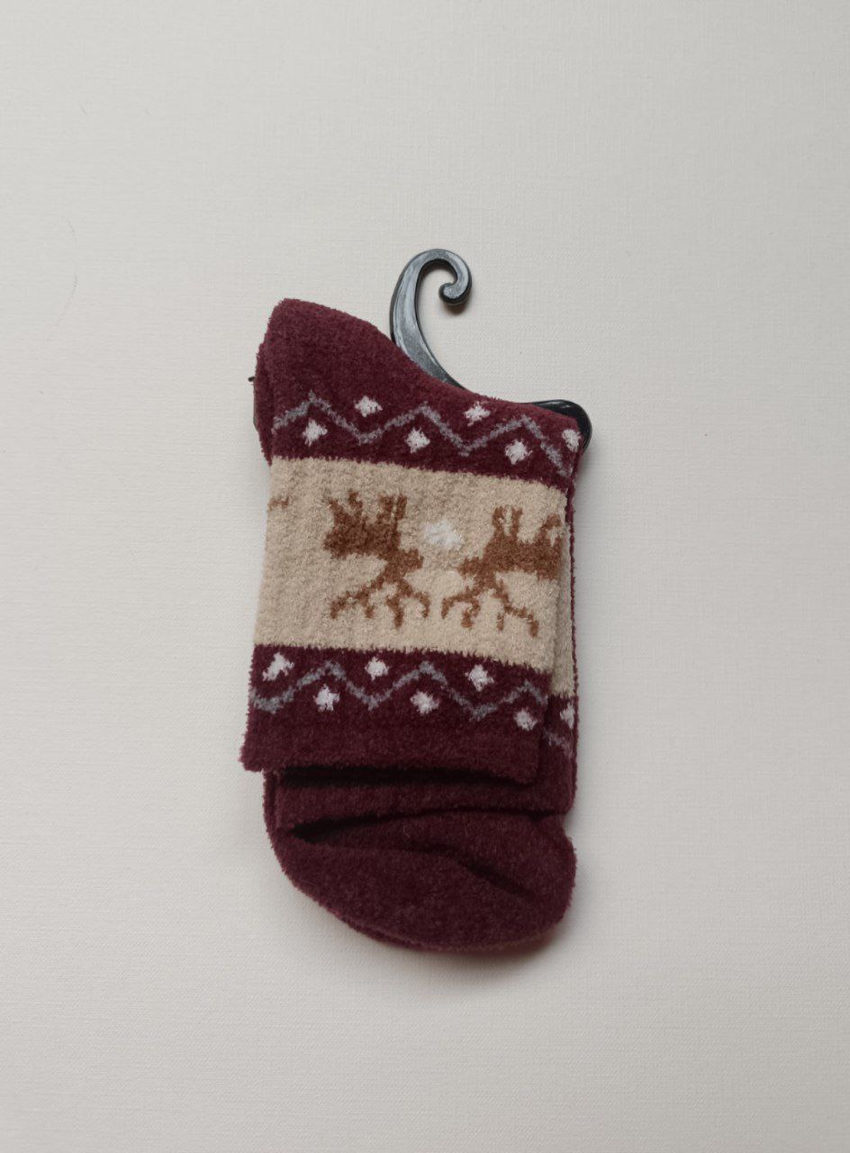 جوراب نخ پنبه 3 عدد ی ساق دار طرح زمینه کبریتی بغل پاکتی