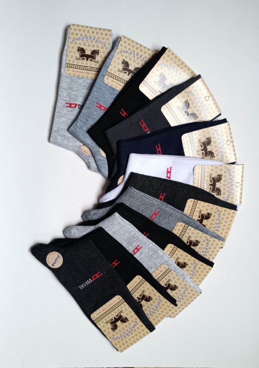 جوراب نخ پنبه 12 عددی مردانه ساق دار طرح زمینه کبریتی بغل پاکتی