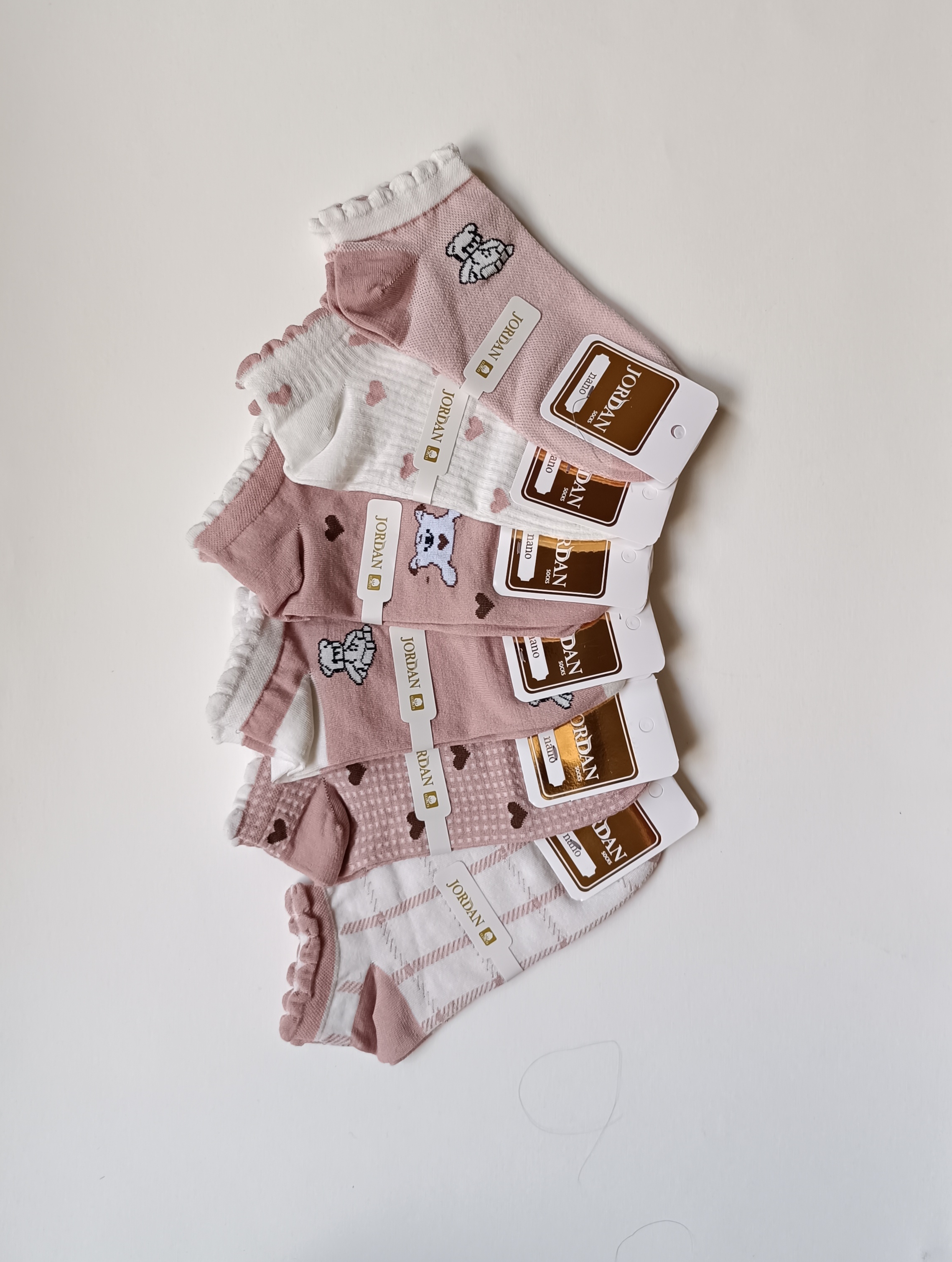 جوراب فانتزی دخترانه بسته 6 عددی کش انگلیسی کد 221